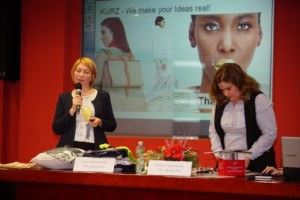 С возможностями использования фольги в производстве одежды познакомила участников заместитель генерального директора департамента Фольга ГК «Дубль-В» Ольга Даниленко, которая познакомила аудиторию с презентацией «Декорирование ткани фольгой. Блестящие и функциональные решения от Leonhard KURZ». 2D/3D голограммы, цифровые голограммы, голограммы по технологии TRUSTSEAL придают изделию уникальность и изысканность. Поэтому сегодня фольга – это уже не только светоотражающий элемент, призванный обеспечить безопасность пользователя в темное время суток на пробежке вдоль автомобильных трасс и т.п., но один из трендов современной кэжуальной и молодежной одежды и обуви. «Дубль-В» производит не только фольгу. О вариантах ярлыков и бумажных этикеток рассказала старший менеджер департамента «Фольга» Анастасия Гусева, а старший менеджер ГК «Дубль В» Елена Строганова представила актуальную в свете внедряемой обязательной маркировки товаров презентацию «Способы маркировки для текстильной и обувной промышленности. Креативные этикетки и ярлыки».