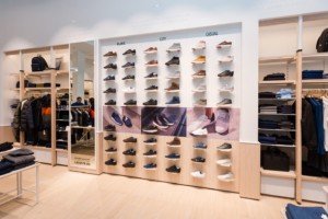 Главным элементом торгового зала стала зона, посвященная рубашке поло – культовому продукту Lacoste. Гигантская стена демонстрирует широкий ассортимент линии, предлагая различные цвета, силуэты, размеры и новинки. Стенд изогнутой формы создает пространство, способствующее расслабленной атмосфере, чему способствуют комфортные сидения.