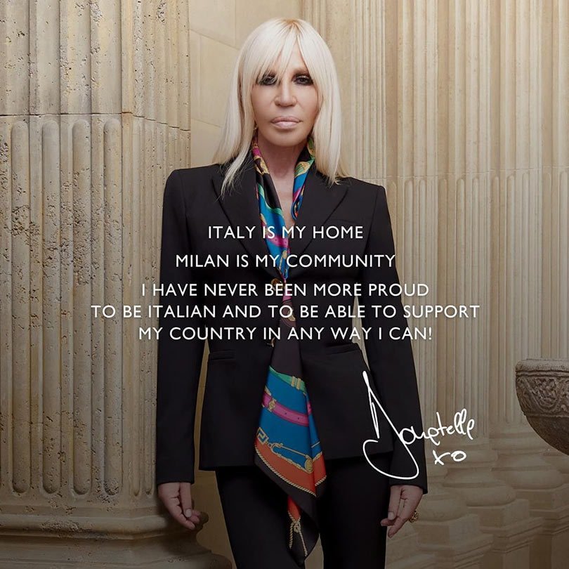Versace, который уже пожертвовал в феврале $1 млн китайскому отделению Красного Креста, выделит дополнительно $400 тысяч миланской больнице Сан-Раффаэле и $100 тысяч компании Camera Della Moda для поставки аппаратов искусственной вентиляции легких и медицинского оборудования в итальянские больницы.