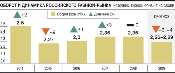В 2015 году оборот fashion-рынка в России сократился на 9%, до 2,27 трлн руб. Основной причиной падения продаж стал обвал рубля по отношению к доллару, вызвавший рост цен в среднем на 25-30%.