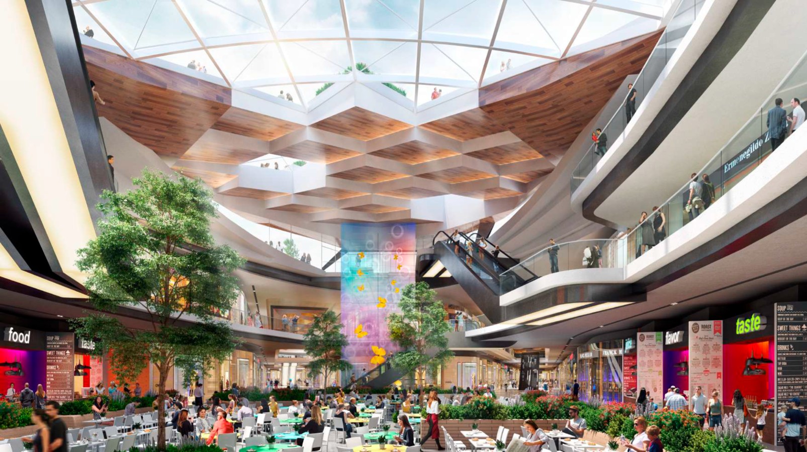 При разработке проекта большое внимание было уделено общественным пространствам и точкам питания (24% от всех арендных площадей), где посетители смогут с пользой провести время по дороге с или на работу, а также в обеденный перерыв. На самом верхнем уровне, расположенном на поверхности земли, будет организована рекреационная зона.