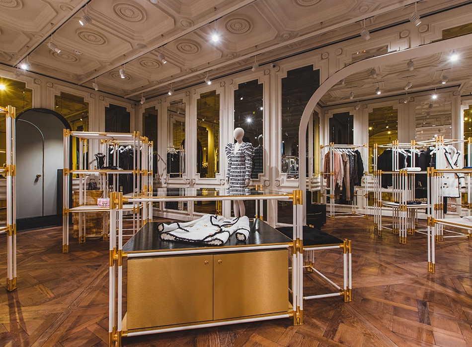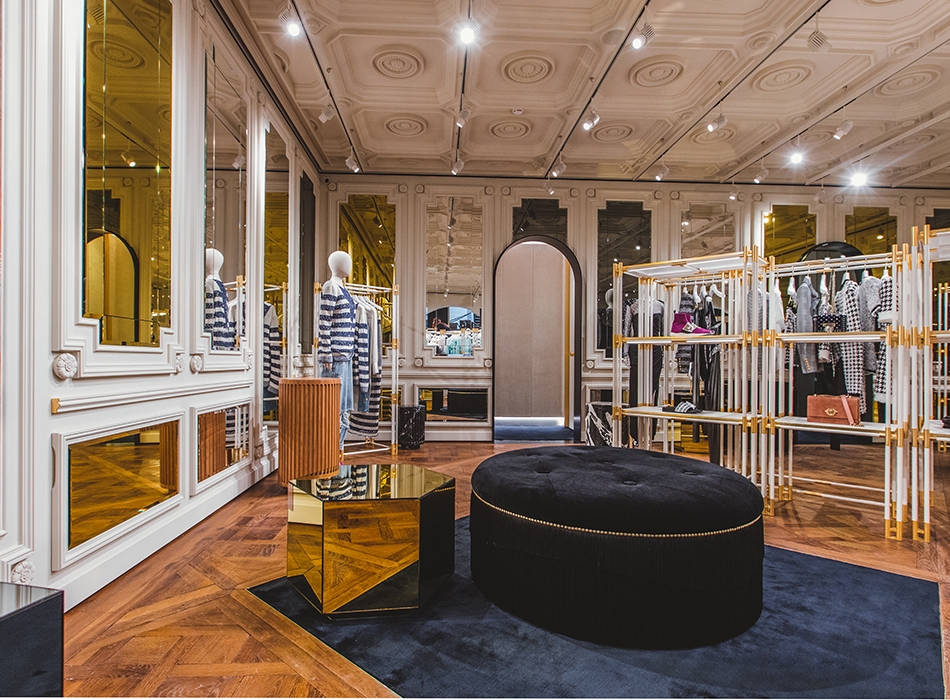 Оформлением магазина, площадь которого составила 154 метра, занимались креативный директор Balmain Оливье Рустен и архитекторы парижского дизайн-бюро Studio AMV. По словам работающей в нем Анны Филиппу, Рустен «хотел, чтобы любой посетитель бутика Balmain мог почувствовать атмосферу Парижа, где бы он ни находился,» но представить ее в более современном ключе, «избегая ожидаемых клише». Впервые новый концепт был использован в миланском магазине на улице Монтенаполеоне год назад.