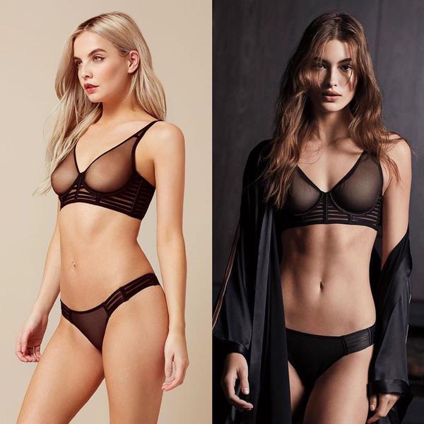 Новый прозрачный черный комплект Mesh Plunge Bra марки Victoria’s Secret в настоящий момент продается на сайте за 90 долларов. Аналогичный комплект Striped Mesh Cheekini Panty марки Agent Provocateur вышел летом 2018 года и сейчас недоступен для покупки, пишет lenta.ru.
